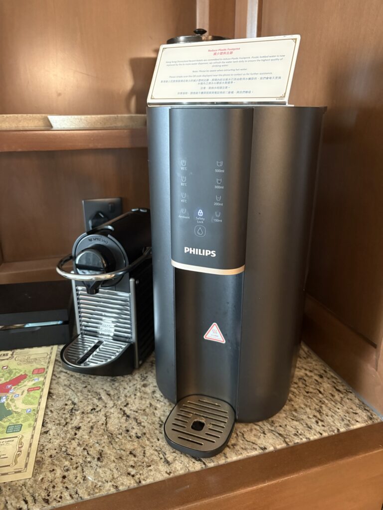 水を買う判断は部屋のウォーターサーバーを見てからでも遅くないと思います。(2Lくらいのウォーターサーバーがあり、空のペットボトルとかに入れて使えば良い感じ)